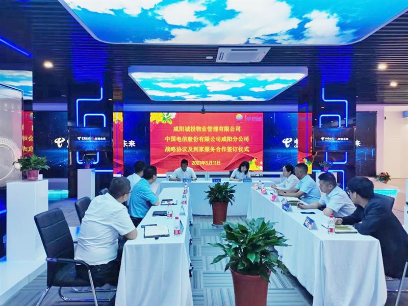 | 5月11日上午,城投物業(yè)公司董事長、總經理王雅玲帶隊到咸陽電信分公司調研參觀,咸陽電信分公司市場部總經理胥寶輝等陪同。雙方就合作事宜交流座談并簽署戰(zhàn)略合作框架協(xié)議。