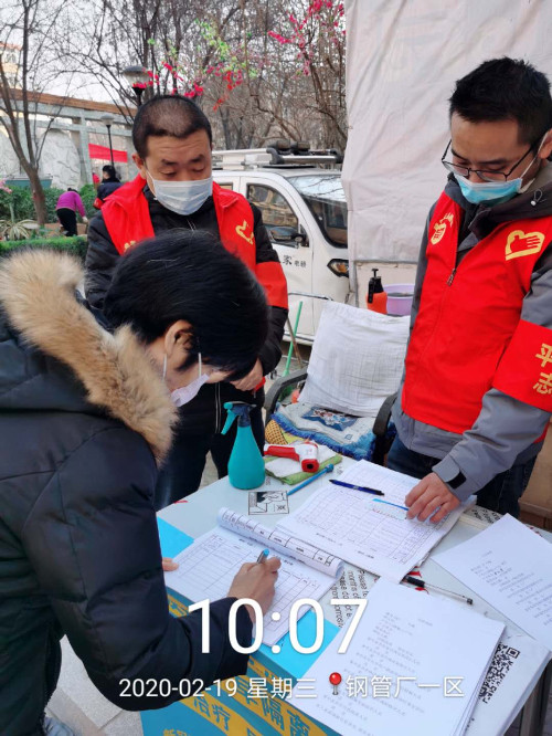 2月19日,停車公司組織16名志愿者,分兩組前往物業(yè)公司管轄的鋼管廠小區(qū)開展疫情防控志愿服務活動。