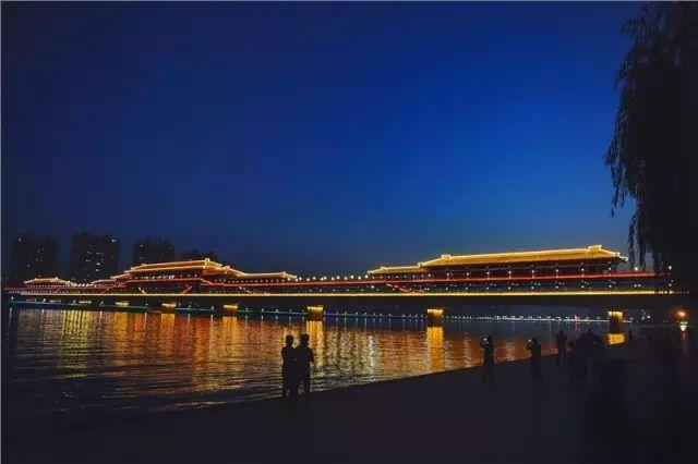 北起渭陽(yáng)路,南至渭河南岸,橫跨渭河,連通世紀(jì)大道的“古渡廊橋”,名字源自關(guān)中八景之“咸陽(yáng)古渡”,全長(zhǎng)748米,寬14米,是全國(guó)首座秦建筑風(fēng)格、雙層人行景觀廊橋,自建成以來(lái)立即成為我市地標(biāo)性文化景觀之一。[ 詳細(xì)內(nèi)容